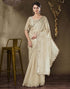 Beige Tissue Silk Lace Plain Saree