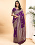 • Maroon Silk Blend Woven Kanjivaram Saree