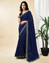 Navy Blue Vichitra Silk Embroidery Solid Saree