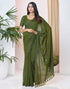 Olive Green Linen Sequence Saree