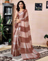 Ready To Wear Brown Chanderi Printed Saree With Pocket