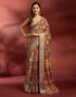 Ready To Wear Khaki Dola Silk Printed SareeReady To Wear Khaki Dola Silk Printed Saree