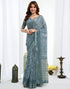 Ready To Wear Dusty Blue Printed Linen SareeReady To Wear Dusty Blue Printed Linen Saree