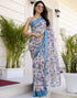 Ready To Wear Blue Linen Floral Printed SareeReady To Wear Blue Linen Floral Printed Saree