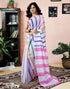 Ready To Wear White Chanderi Printed Saree With Pocket
