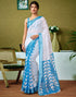 Ready To Wear Dusty Blue Printed Linen SareeReady To Wear Dusty Blue Printed Linen Saree