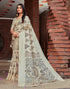 Off White Cotton Blend Printed Saree