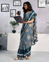 Ready To Wear Dusty Teal Green Cotton Printed SareeReady To Wear Dusty Teal Green Cotton Printed Saree