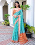 Turquoise Linen Ikkat Printed SareeTurquoise Linen Ikkat Printed Saree