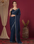 Navy Blue Georgette Stone Work Swarovski Saree