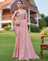 Peach Pink Georgette Foil Printed Saree