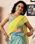 Ready To Wear Bright Yellow Chanderi Printed Saree With Pocket