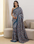 • Ready To Wear Navy Blue Silk Printed Saree