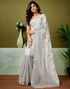 Ready To Wear Off White Linen Zari Printed Saree