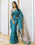 Teal Blue Cotton Blend Bandhani Printed Saree