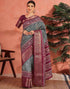Deep Violet Silk Printed Zari Stripe SareeDeep Violet Silk Printed Zari Stripe Saree