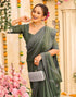 Olive Green Shimmer Stone Work Swarovski Saree