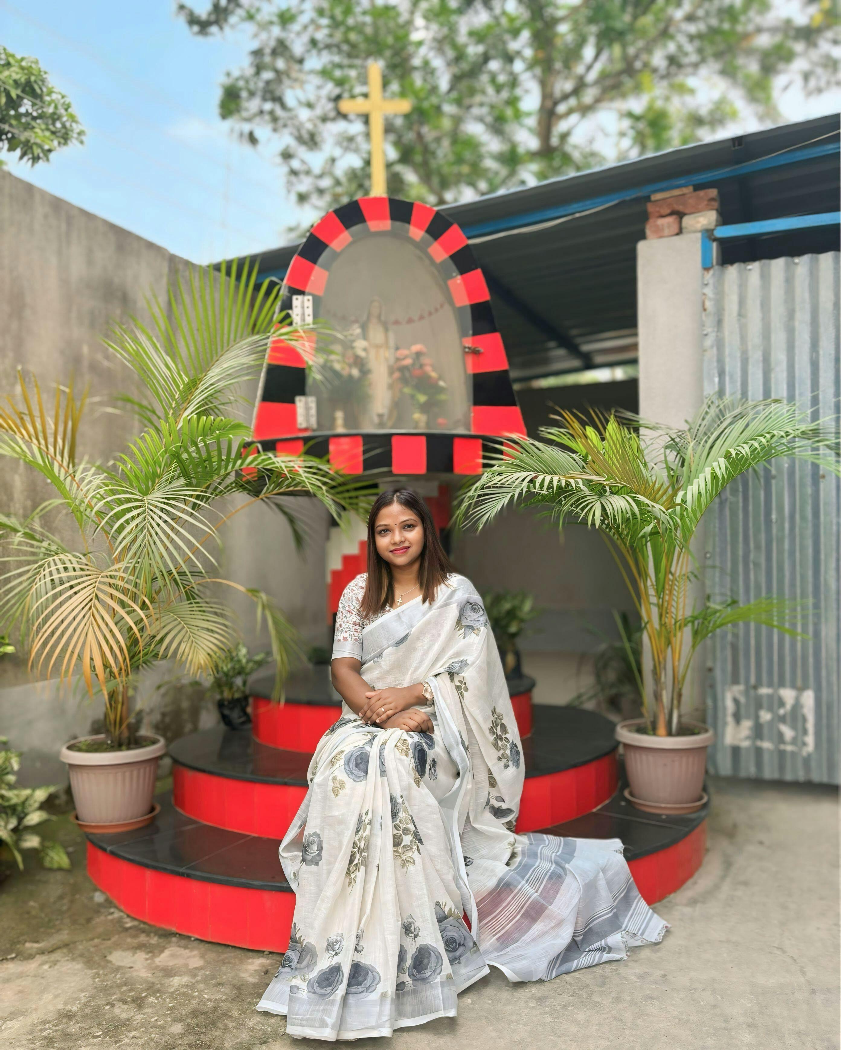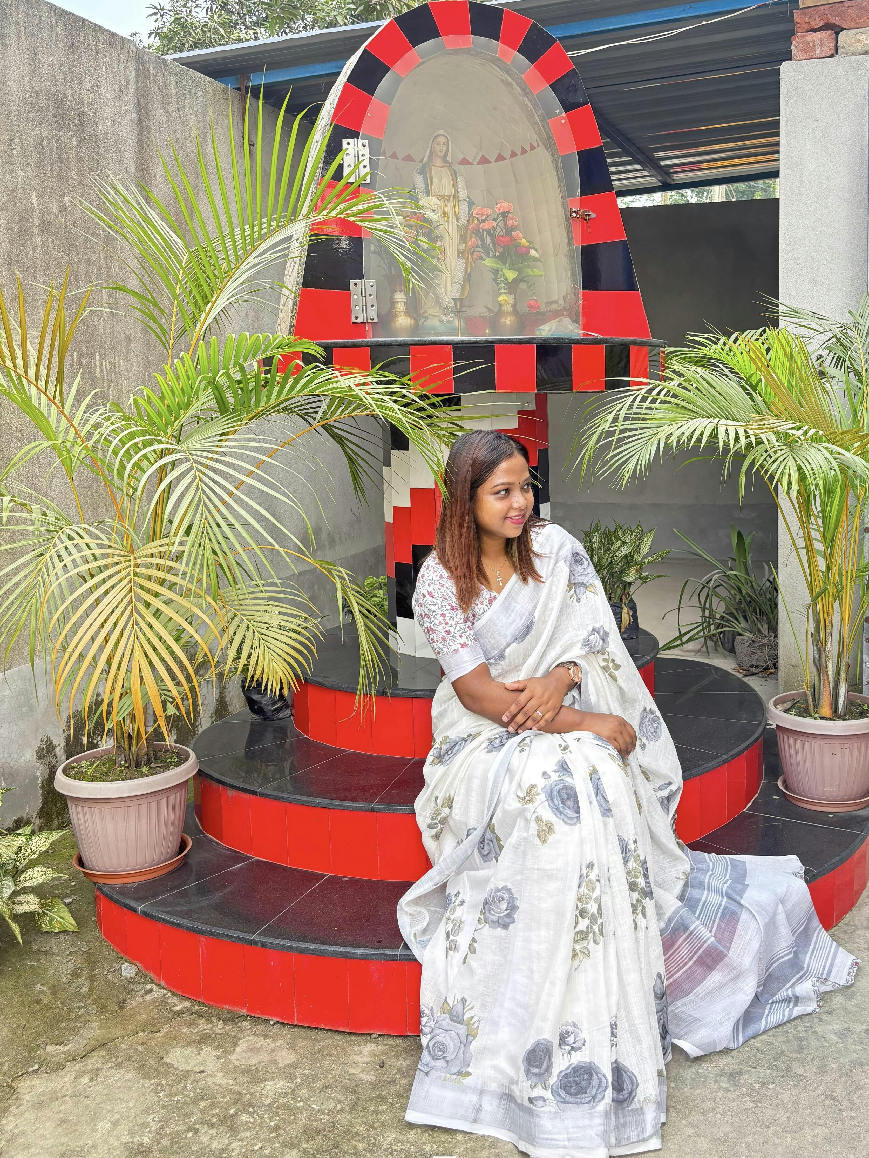 Dark Beige Cotton Printed SareeDark Beige Cotton Printed Saree- Regular price