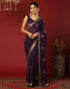Dark Purple Chiffon Stone Work Swarovski Saree