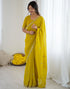 Lime Yellow Tissue Silk Sequence Embroidery Saree