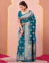 Teal Blue Silk Woven Banarasi SareeTeal Blue Silk Woven Banarasi Saree