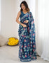 Navy Blue Linen Printed Saree