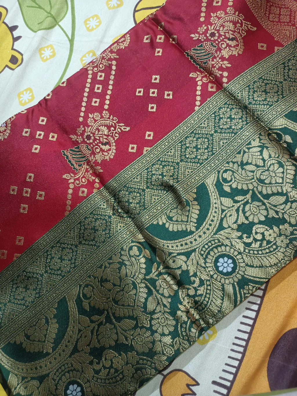 Dark Green Silk Woven Banarasi SareeDark Green Silk Woven Banarasi Saree- Regular price