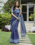 Dark Blue Chanderi Printed Saree