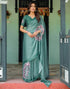 Handsfree Dusty Teal Green Satin Printed Saree