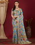 Blue Linen Floral Printed SareeBlue Linen Floral Printed Saree
