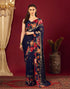 Navy Blue Georgette Floral Printed Saree