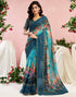 Ready To Wear Blue Chanderi Embroidery Floral Printed Saree