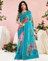 Ready To Wear Blue Chanderi Embroidery Floral Printed Saree
