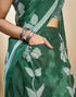 Ready To Wear Green Pure Cotton Floral Printed Saree With Pocket