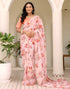 Ready To Wear White Georgette Floral Printed SareeReady To Wear White Georgette Floral Printed Saree
