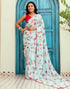 Ready To Wear White Georgette Floral Printed SareeReady To Wear White Georgette Floral Printed Saree