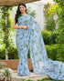 Ready To Wear Turquoise Georgette Floral Printed SareeReady To Wear Turquoise Georgette Floral Printed Saree