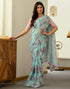 Ready To Wear Turquoise Georgette Floral Printed Saree