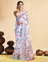 White Linen Floral Printed Saree