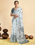 White Linen Floral Printed SareeWhite Linen Floral Printed Saree