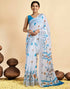 White Linen Floral Printed Saree
