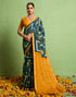 • Mustard Yellow Silk Zari Floral Printed Saree