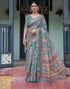 Dusty Dark Green Linen Printed Saree