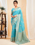 Blue Silk Blend Woven Banarasi SareeBlue Silk Blend Woven Banarasi Saree