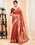 Red Silk Blend Woven Banarasi SareeRed Silk Blend Woven Banarasi Saree