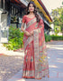 Coral Red Shimmer Silk Printed SareeCoral Red Shimmer Silk Printed Saree