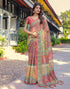 Teal Green Shimmer Silk Printed SareeTeal Green Shimmer Silk Printed Saree