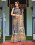 Dark Dusty Blue Linen Floral Printed Saree