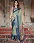 Teal Green Tussar Silk Printed Kalamkari Saree