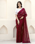 Maroon Georgette Woven Stripe Plain Saree
